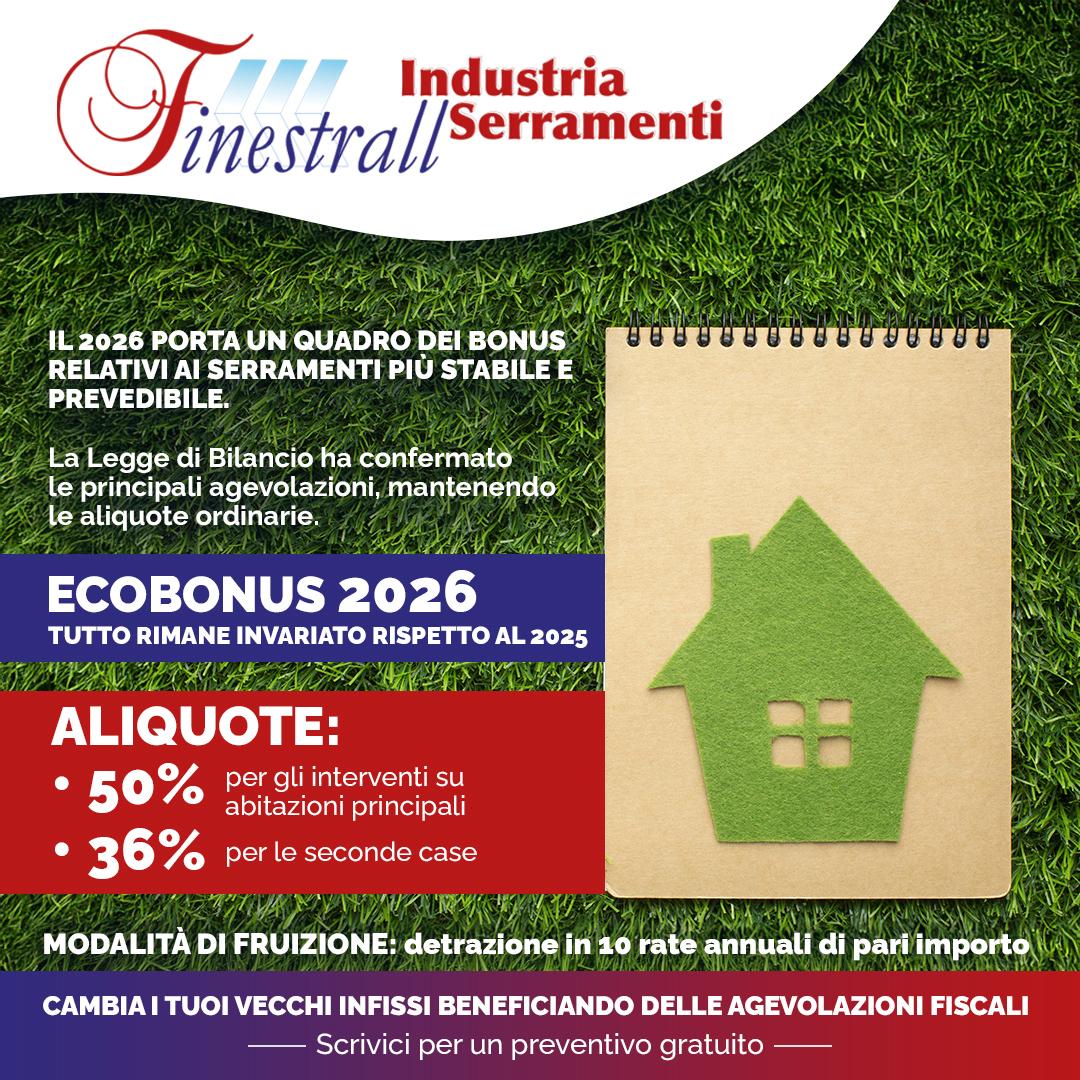 Il cosiddetto Bonus infissi permette di detrarre dall’imponibile IRPEF la spesa sostenuta, in rate annuali di uguale importo e per 10 anni. Spendendo 2.000 euro per gli infissi, ad esempio, si possono portare 1000 euro in detrazione (50% del costo) con rate da 100 euro ciascuna, per 10 anni.